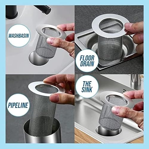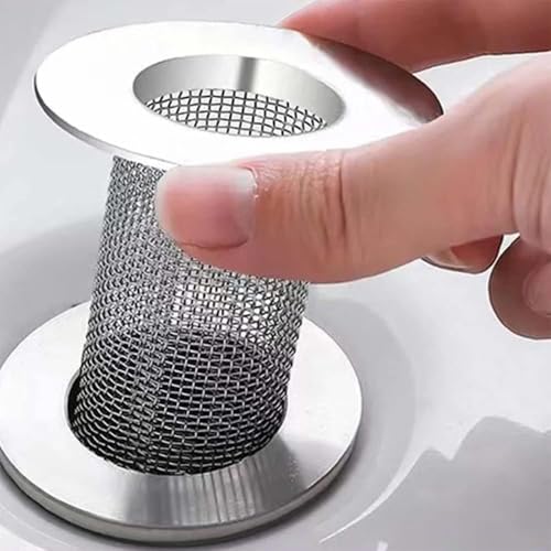 fashion mania - مصفاة تصريف للحوض على شكل سلة متينة، فلتر شبكي مقاوم للصدأ لحوض الاستحمام وحوض الغسيل، يمنع الانسداد وانسداد الشعر (55 × 24 × 40 ملم)