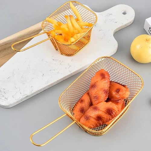 Generic - سلة حامل قلي رقائق البطاطس مصفاة حامل قلي عميقة مع مقبض لون دهبي (24*10*cm7)