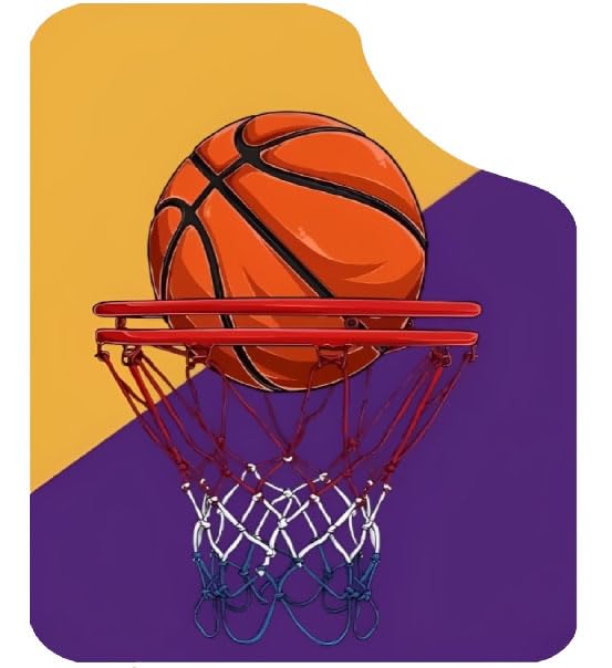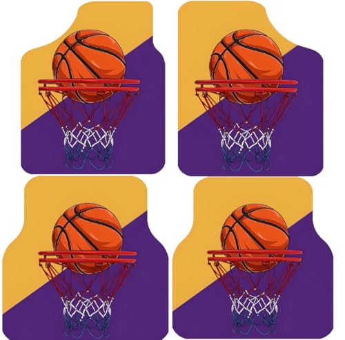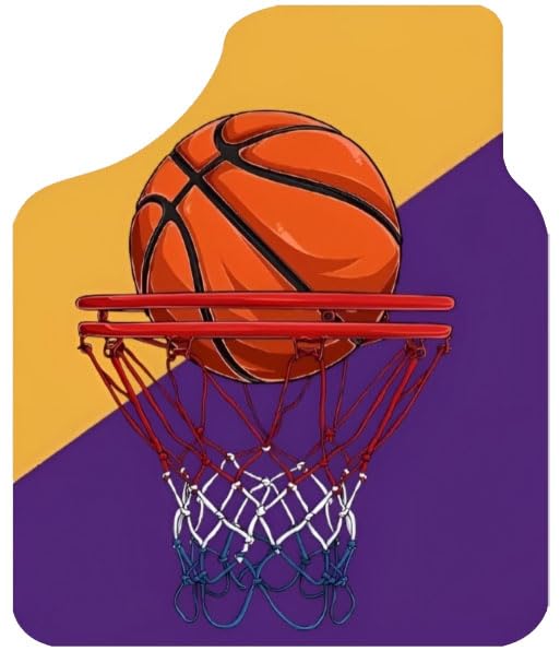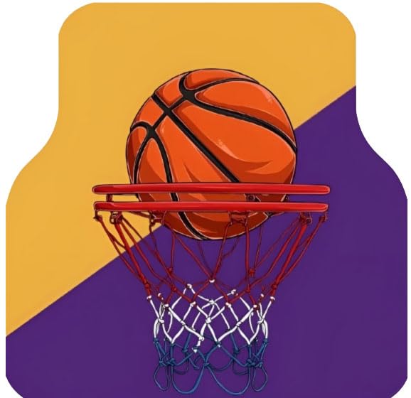 - مزايا التصميم: دواسات أرضية سيارة مخصصة بطابع كرة السلة تتميز بألوان برتقالية وأرجوانية نابضة بالحياة مع رسومات مفصلة لكرة السلة والحلقات.