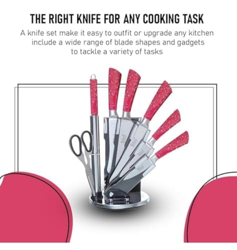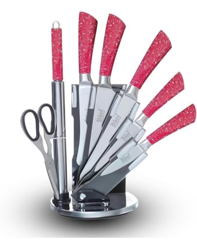 Generic - طقم سكاكين الشيف 7 قطع من باس، طقم سكاكين مطبخ من الفولاذ المقاوم للصدأ، طقم أدوات مائدة حادة للغاية مع حامل ومقص ومبراة (أحمر)