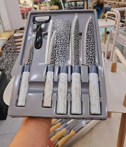 Generic - طقم سكاكين مطبخ 6 قطع من باس، أسود وبني، 2725297520205