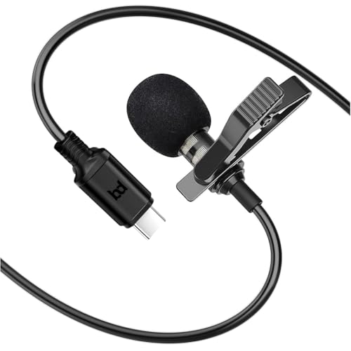 BassDrops - ميكروفون بياقة لافالير من باس دروبس بمنفذ يو اس بي نوع سي احترافي بمشبك ومكثف اومني مكثف صغير لتسجيل الفيديو وتقليل الضوضاء لمقابلات يوتيوب ومدونات الفيديو على اندرويد