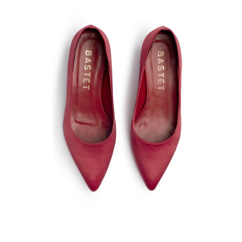 BASTET - حذاء "خونسو" للنساء بكعب صغير بطول 3 سم طراز H3(004) - حذاء ساتان أنيق بمقدمة مدببة ونعل خارجي من بلاستيك بي في سي - حذاء رسمي كلاسيكي مريح من باسيت