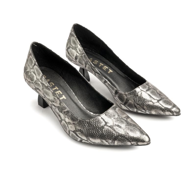 BASTET - حذاء "تاوريت" بكعب صغير 5 سم للنساء من باستيت حذاء حفلات بمقدمة مدببة وطبعة جلد ثعبان. أنيقة وجريئة - المقاس: