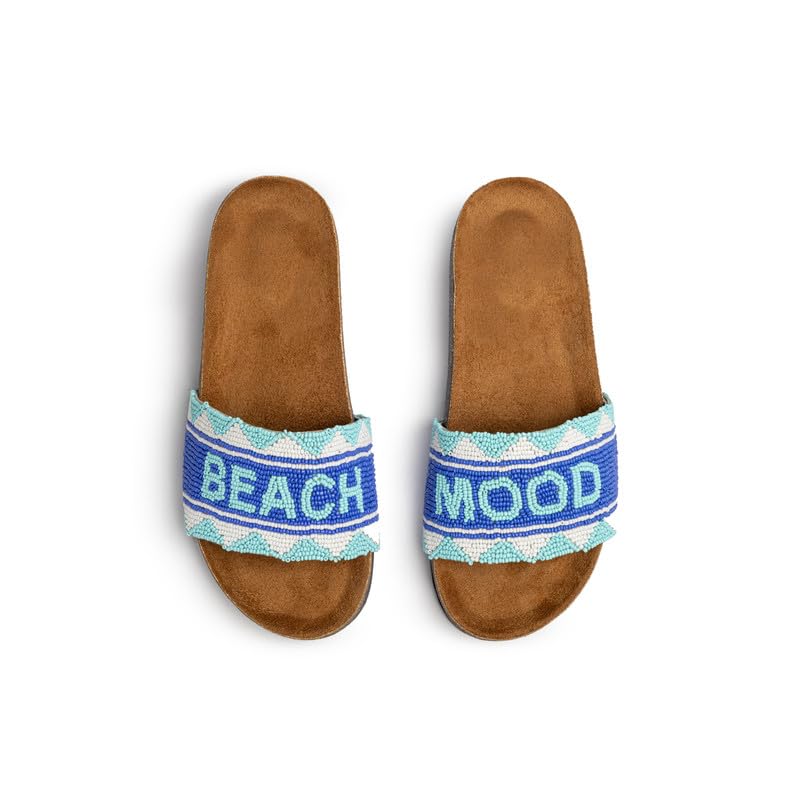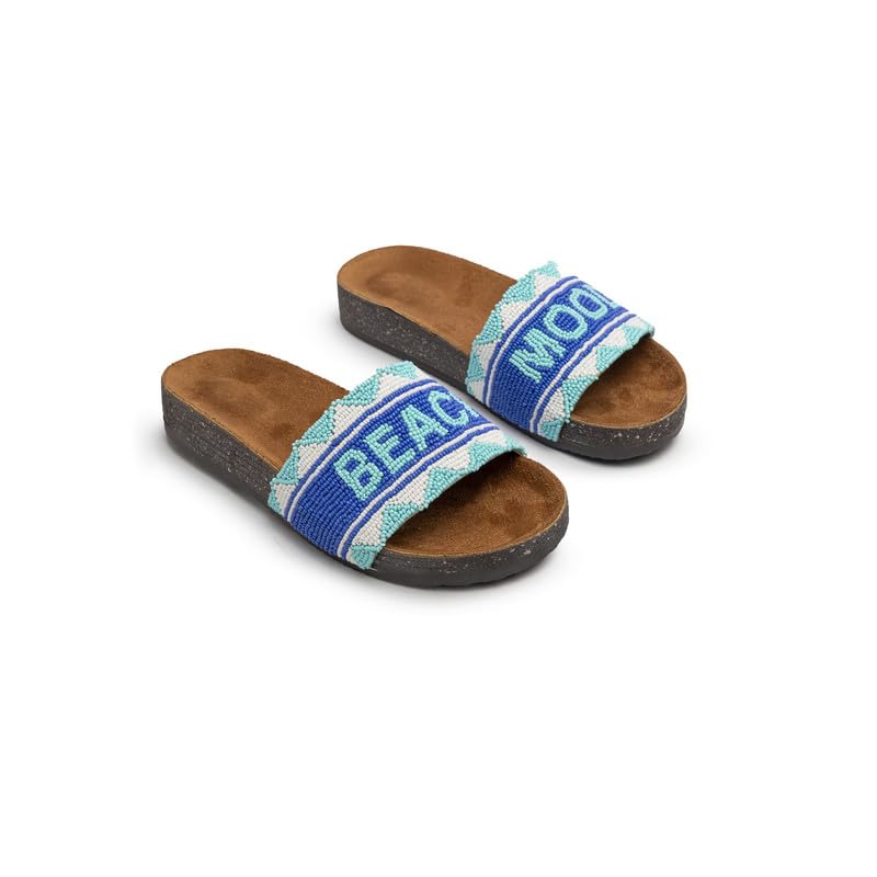 BASTET - شبشب نسائي من باست "زهراء" مصنوع يدويًا من الفوم المطرز بالخرز من بيتش مود للمشاعر الباردة بجانب حمام السباحة