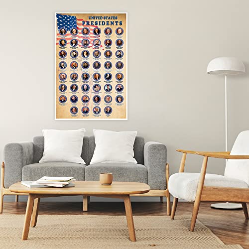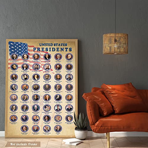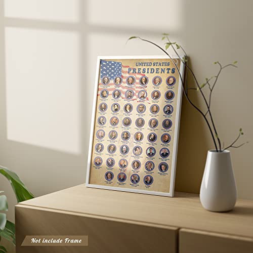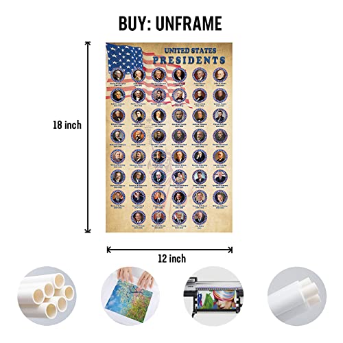 BASYEEO - بوستر رؤساء الولايات المتحدة من باسييو قائمة رئيس لجميع بدون إطار 12 × 18 بوصة متعدد الألوان