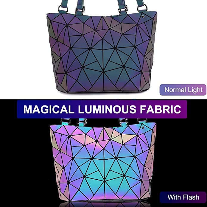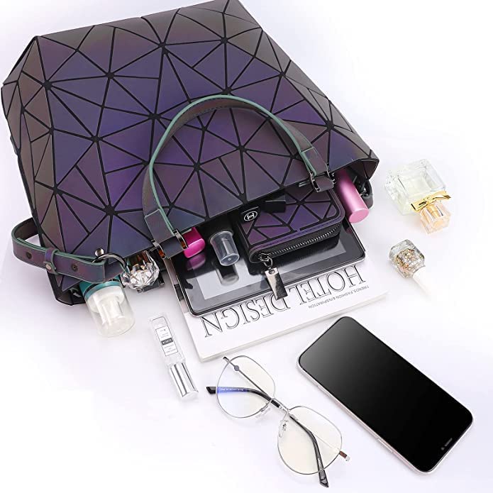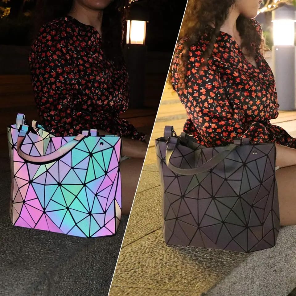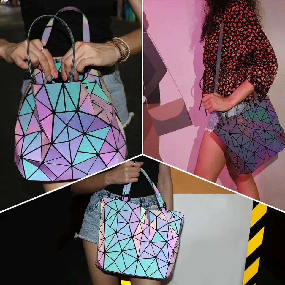 Batcat - شنطة كروس بتصميم هندسي مضيء بنمط عاكس ثلاثي الأبعاد بألوان قوس قزح الأنيقة من باتكات™، لون متعددة الألوان، للنساء.