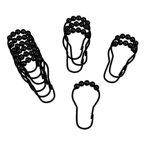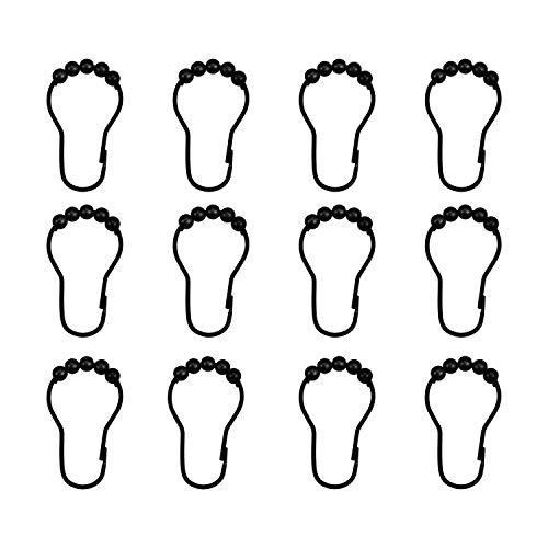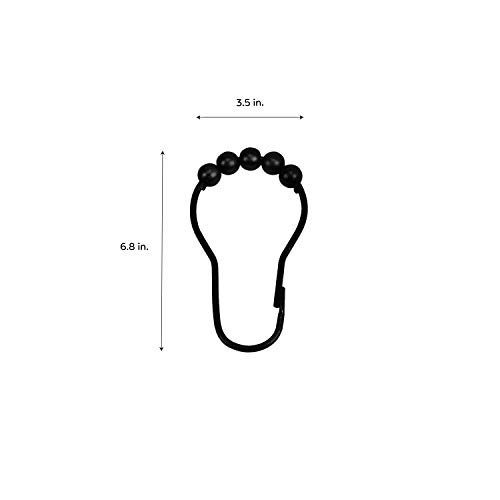 Bath Bliss - خطافات ستارة مقاومة للصدأ سهلة الاستخدام لقضبان ستائر الحمام، حلقات دوارة باللون الأسود المطفي، 6.8 سم × 3.5 سم من باث بليس، 12 قطعة