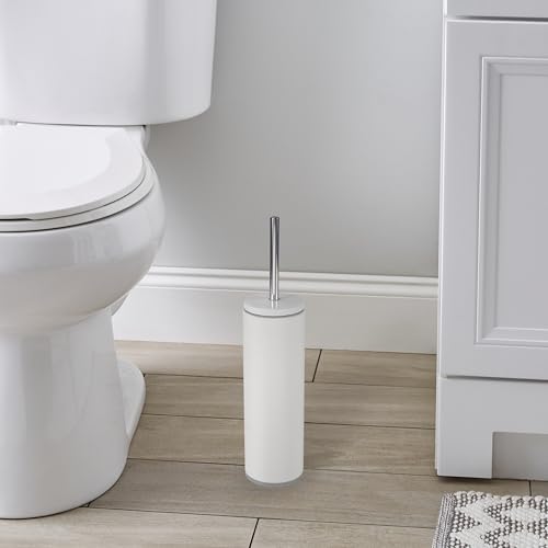 Bath Bliss - فرشاة تواليت من الفولاذ مقاوم للصدأ مع بطانة قابلة للإزالة بشعيرات متينة وقوية تدوم طويلًا مع علبة من باث بليس، أبيض