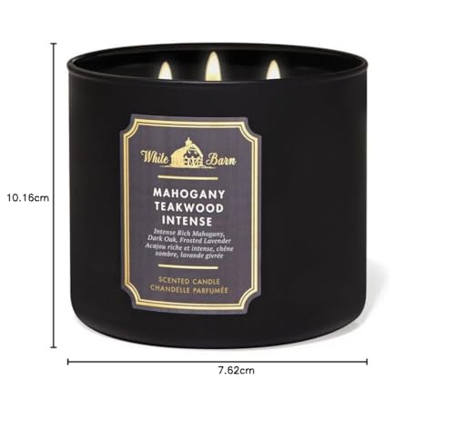 Bath & Body Works - شمعة وايت بارن ذات الـ3 فتائل بزيوت عطرية من باث اند بودي وركس، تزن 412 جرامًا- بالزيوت الأساسية لروائح عام 2021 (من خشب الساج والماهوجني عالي الكثافة)