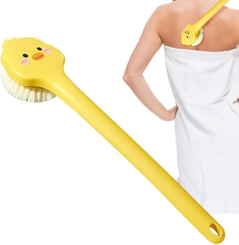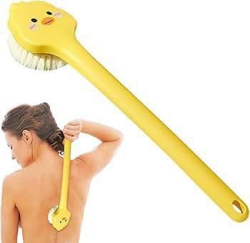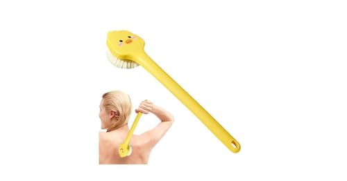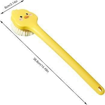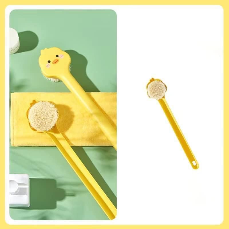 Generic - فرشاة استحمام بيد طويلة 35 سم بتصميم بطة، لإزالة الجلد الميت وتنظيف البشرة، لون أصفر@