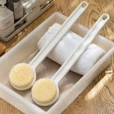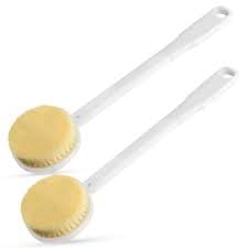 Generic - فرشاة استحمام ذات شعيرات ناعمة وفرشاة استحمام بمقبض طويل مثالية لتنظيف الظهر والتدليك باللون الأبيض 2 قطعة
