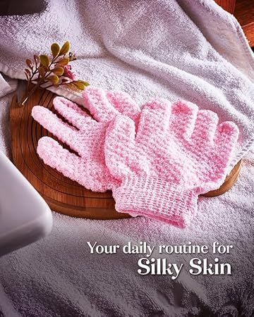 - العبوة تشمل: زوج واحد من قفازات التقشير الوردية للاستخدام في الحمام