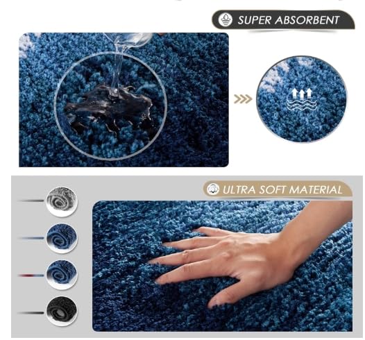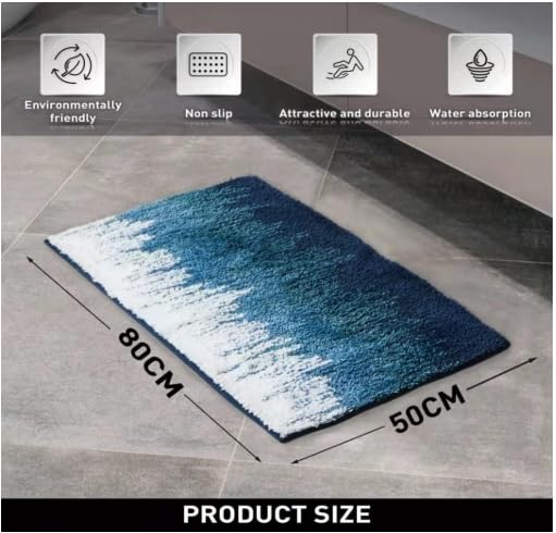 Generic - دواسة بانيو وسجادة أرضية متعددة الاستخدامات مايكروفايبر بملمس ناعم للتدفئة وامتصاص عالي مع قاعدة مانعة للانزلاق – مقاس 80×50 سم (ازرق)