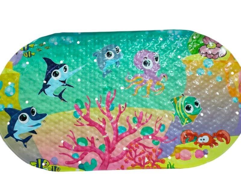 Generic - دواسة حمام سيليكون رائعة مضادة للانزلاق وعالية الالتصاق على أرضية الحمام، مقاس (65 × 35 سم) (طبعة مستوحاة من عالم البحر متعددة الألوان)