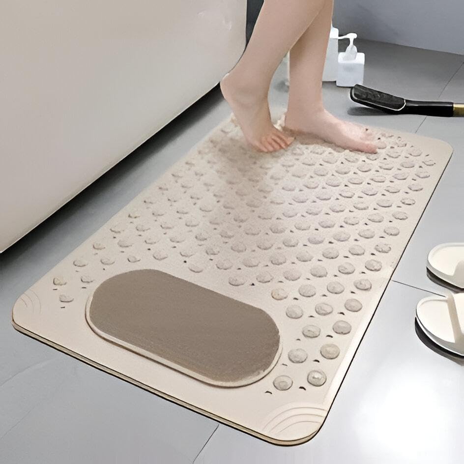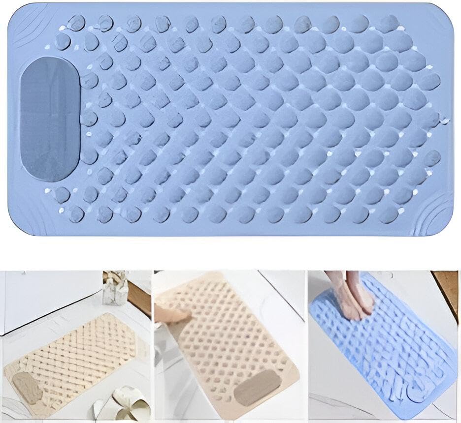 - سجادة حمام مضادة للانزلاق مصنوعة من السيليكون والبلاستيك المتين بمقاس 70 × 40 سم مع العديد من القواعد اللاصقة التي تمسك الأرضيات الرطبة بقوة.