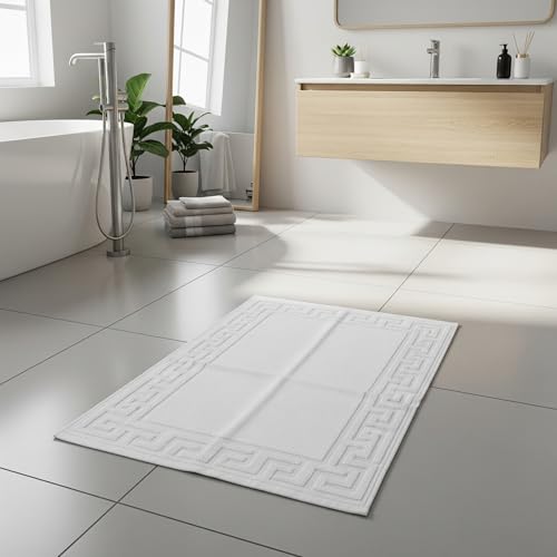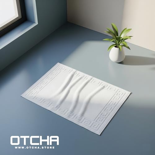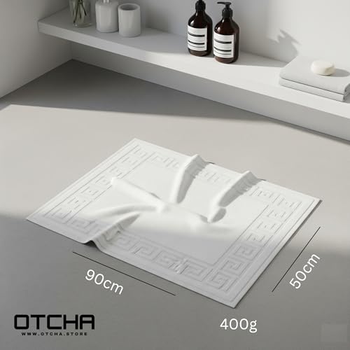 Otcha - دواسات حمام بيضاء 100% قطن 50 × 90 سم/ 400 جم - للشقق أو المنازل وغرف الفنادق