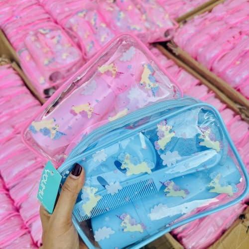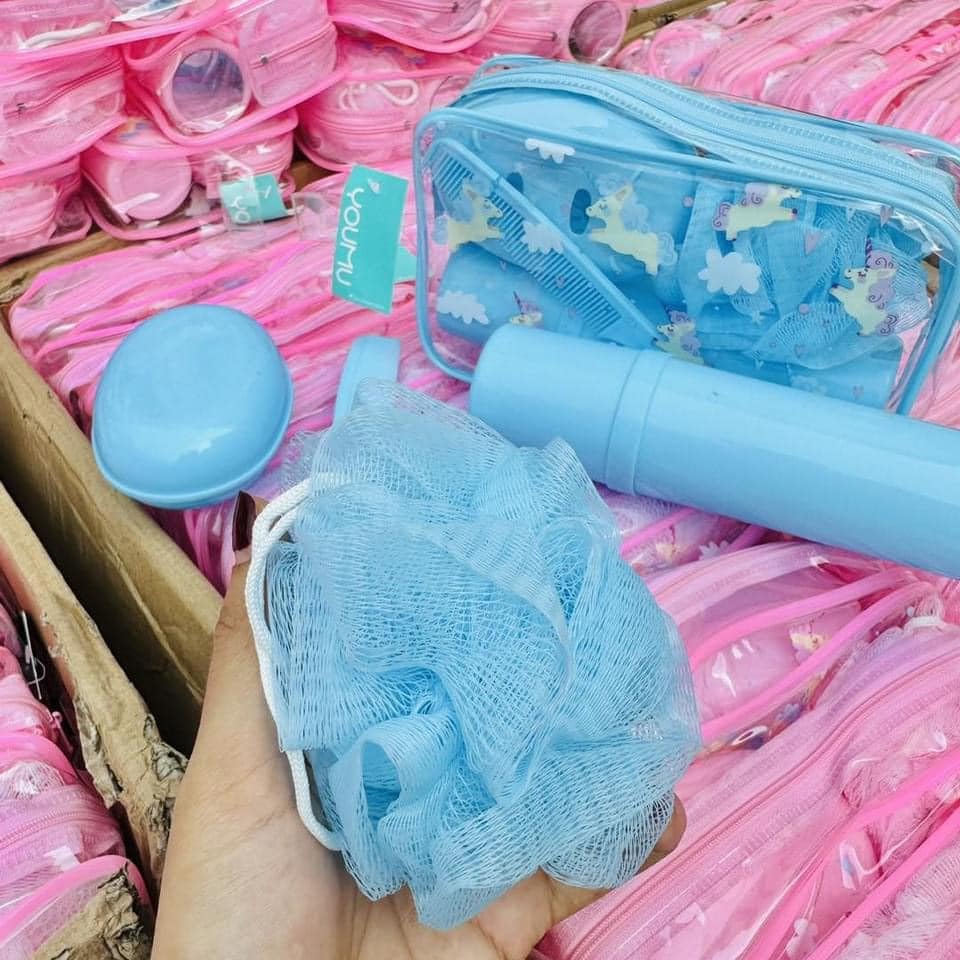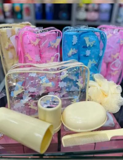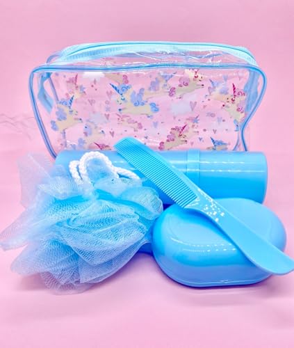Generic - مجموعة هدايا الحمام والاستحمام - تتضمن مشط وطبق صابون وليفة وشنطة فرشاة في شنطة مريحة - مثالية للمنزل او السفر - لون ازرق ----- من رنا ستور