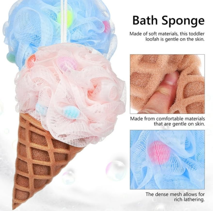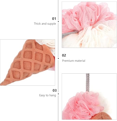 Generic - ليفة استحمام على شكل ايس كريم، ليفة استحمام على شكل كرة غسيل وتقشير الجسم، إسفنجة تنظيف وتقشير الجسم - متعددة الألوان
