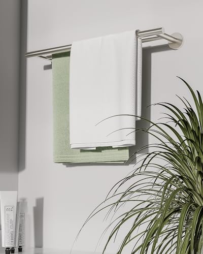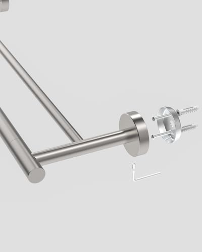 - 【طول متعدد الاستخدامات】 مع حجم كبير 18 انش، يوفر قضيب المنشفة المزدوج مساحة واسعة لتعليق المناشف، مما يعزز الجفاف السريع. مثالية للاستخدام في المطابخ والحمامات وغرف الغسيل، يمكنك تركيبها بسهولة على جانبي الخزانة أو باب الخزانة لتخزين مريح لمناشف اليد والأطباق.