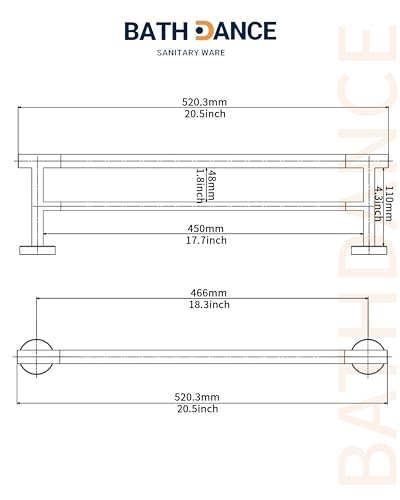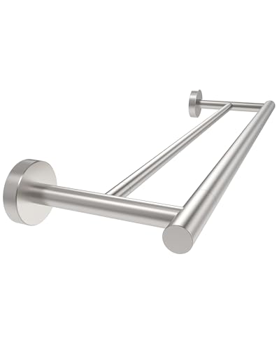 BATHDANCE - حامل مناشف مزدوج مصقول من الستانلس ستيل 304 مقاس 18 انش للحمام والمطبخ وحامل مناشف اليد SUS304 يثبت على الحائط بطول إجمالي 20 انش من باثدانس (رمادي مصقول)