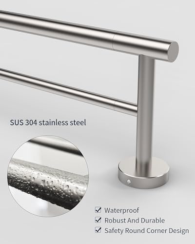 - 【ستانلس ستيل فاخر】 مصنوع من الستانلس ستيل 304 عالي الجودة مع لمسة نهائية مصقولة أنيقة، يضمن قضيب المنشفة المزدوج الخاص بنا قوة ومتانة استثنائية. لا يمنع الهيكل المصنوع من الستانلس ستيل الخدوش فحسب، بل يقاوم الصدأ أيضًا، ويحافظ على مظهر أنيق بمرور الوقت.