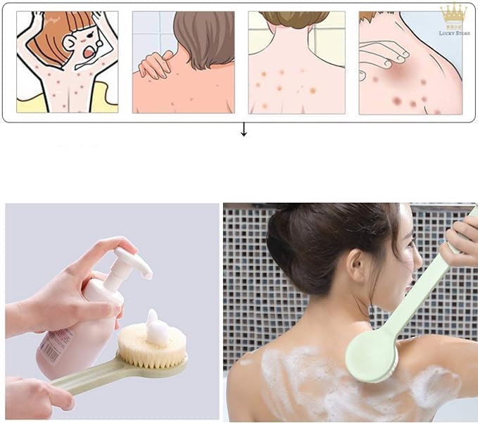 - فرشاة استحمام بمقبض طويل، فرشاة تنظيف لطيفة لبشرة الظهر، فرشاة استحمام للجسم، فرشاة استحمام للتقشير وتحسين الدورة الدموية
