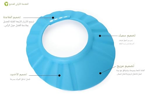 - توفر قبعة استحمام الطفل البلاستيكية القابلة للتعديل مقاساً محكماً ومريحاً للرضع والأطفال الصغار، مما يحمي أعينهم ووجوههم بفعالية من الماء والشامبو أثناء وقت الاستحمام لضمان السلامة والراحة.