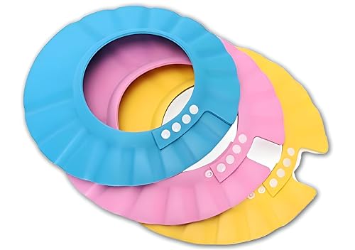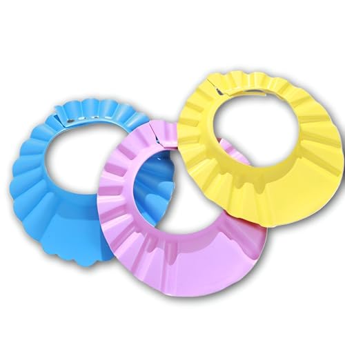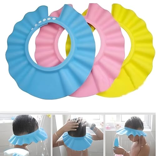 Generic - قبعة استحمام بلاستيك مريحة وقابلة للتعديل للأطفال البيبي والصغار، لمنع وصول الشامبو والماء إلى العينين والأذنين، عبوة من 3 قطع