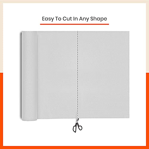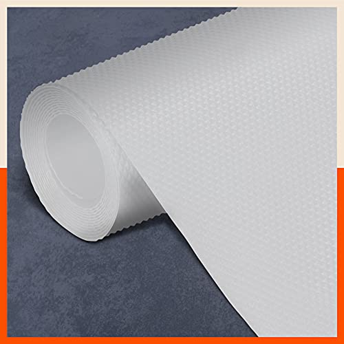 Bathla - بطانة رفوف مضادة للانزلاق ومقاومة للحرارة وقابلة للغسل وإعادة الاستخدام ومتعددة الأغراض للمطبخ والدرج والترابيزة والثلاجة من باثلا، نسيج ماسي أبيض، 45 سم × 1.5 م