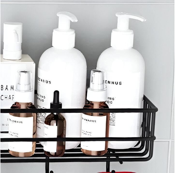 - يعمل المنتج أيضًا كرف منظم أنيق للحمام، مما يوفر مساحة مخصصة لتخزين مستحضرات التجميل ومنتجات العناية بالبشرة والاكسسوارات، مما يساعد على الحفاظ على بيئة حمام مرتبة وعملية.