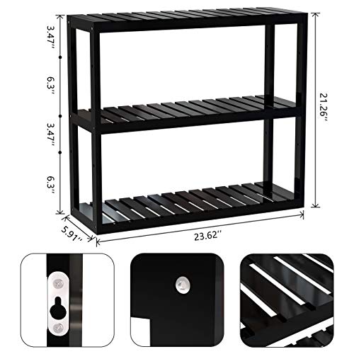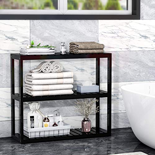 Ruichang - منظم رف بامبو للحمام - رف تخزين مكون من 3 مستويات مع رف قابل للتعديل يثبت على الحائط فوق التواليت للحمام والمطبخ وغرفة المعيشة (أسود)