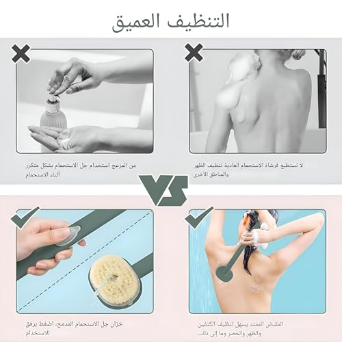- الميزة البارزة لهذه الفرشاة هي مقبضها الطويل 14.18 انش، وهي مصممة بخبرة لتوفير وصول واسع النطاق، مما يسمح للمستخدمين بتنظيف المناطق الصعبة مثل الظهر والكتفين والذراعين والخصر والساقين دون إجهاد. تم تصميم المقبض من مواد عالية الجودة تضمن قبضة مريحة، مما يسمح باستخدام التمدد دون إزعاج. وهذا يجعلها مناسبة لكل من الرجال والنساء، لأنها تتكيف بسهولة مع أحجام اليد المختلفة، مما يجعل كل حمام تجربة ممتعة