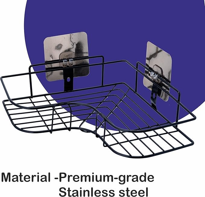 Generic - رف زاوية للحمام مقاوم للصدأ بدون حفر – رف معدني للدش مع لاصق – منظم للمطبخ للتوابل والصابون والشامبو – رف تخزين مثبت على الحائط