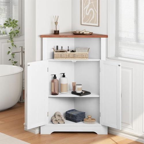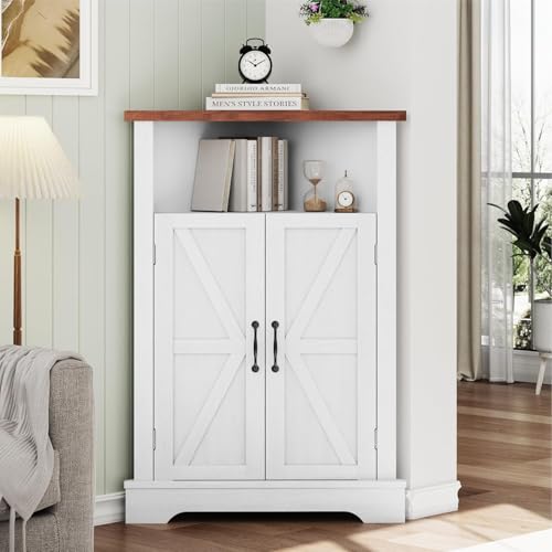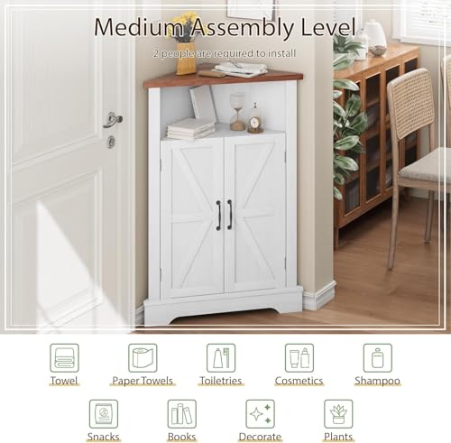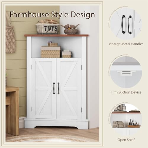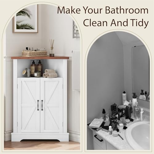 Generic - خزانة تخزين زاوية الحمام، خزانة زاوية ارضية بيت المزرعة مع باب حظيرة ورف قابل للتعديل، منظم خزانة ضيق ابيض للحمام وغرفة المعيشة والمطبخ