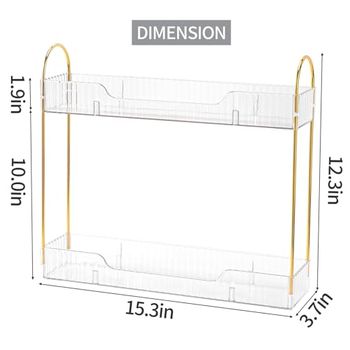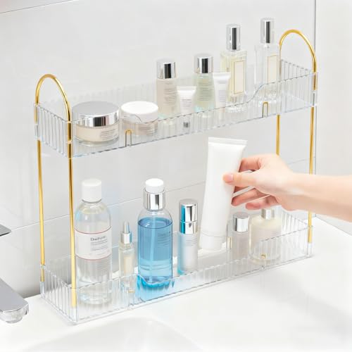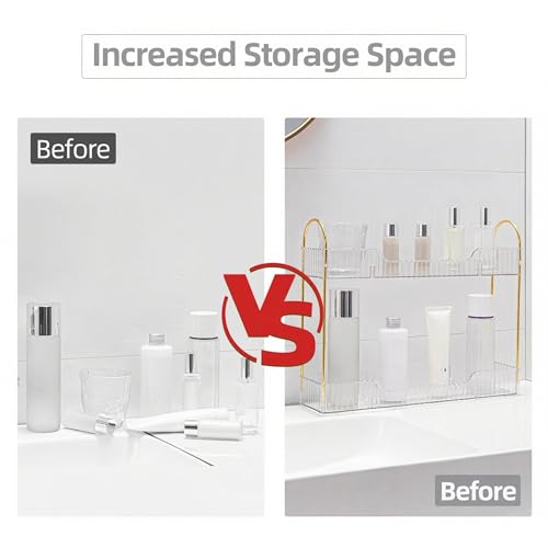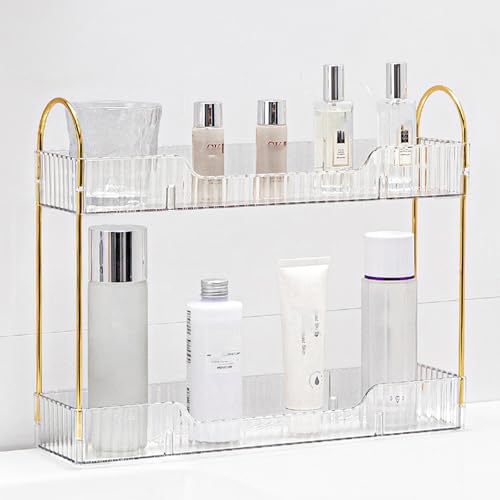 SOVGIZF - منظم منضدة الحمام، رف تخزين رفيع من طبقتين لحوض الحمام، منظم طاولة ضيق لمستحضرات العناية بالبشرة والعطور مع صواني بلاستيكية شفافة
