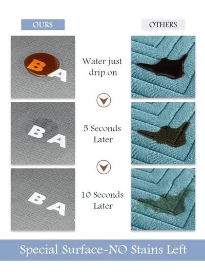 - امتصاص فائق للماء - تتميز دواسة الحمام هذه بقدرات استثنائية على امتصاص الماء وقادرة على امتصاص الرطوبة في ثوانٍ، مما يساعد على تجفيف قدميك بسرعة. تضمن بقاء أرضية حمامك جافة ونظيفة ومرتبة في جميع الأوقات، مما يجعل منزلك أكثر صحة وانتعاشًا.