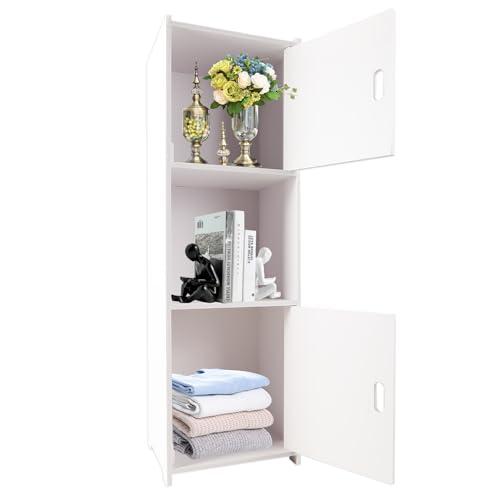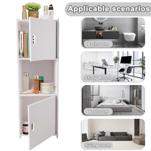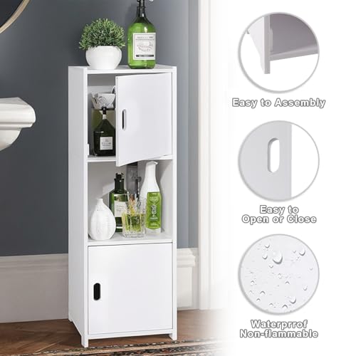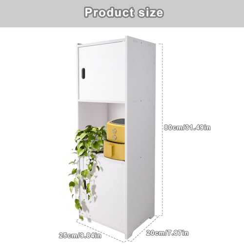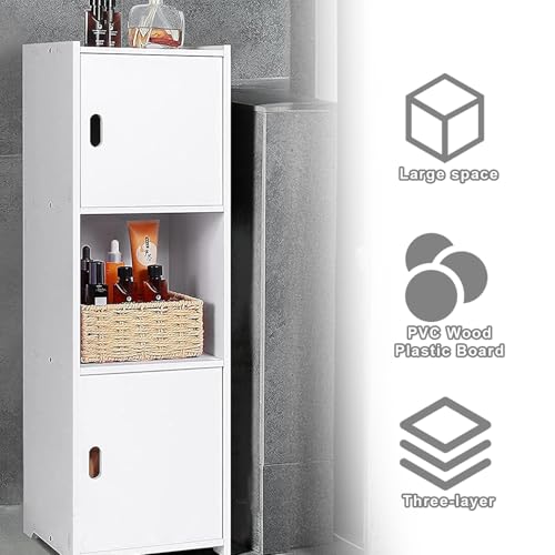 LONENESSL - خزانة ارضية للحمام، خزانة تخزين للحمام مقاومة للماء من 3 طبقات، خزانة تخزين بيضاء مع باب، 80 × 25 × 22 سم، وحدة تنظيم خزانة قائمة بذاتها، لغرفة المعيشة، غرفة النوم، المطبخ، الرواق، الشرفة