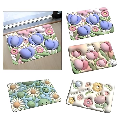 Generic - سجاد أرضية الحمام قابل لغسيل ويتميز بقدرة امتصاص ممتازة وتصميم ثلاثي الأبعاد مضادّ للتآكل والانزلاق يوفر تجفيفًا سريعًا بمقاس مثالي من مادة دياتومية بحجم 40×60 سم 4 سجادة متعدد الألوان