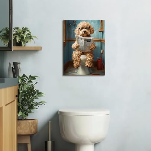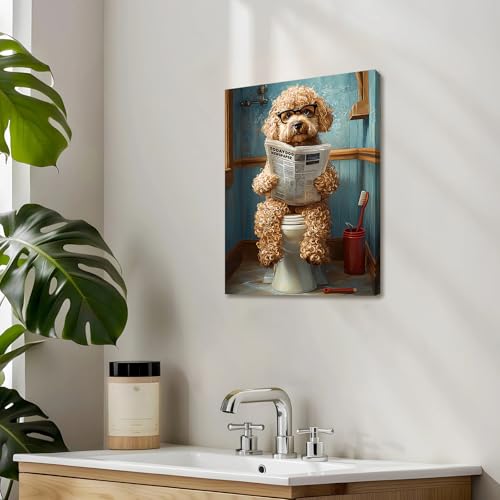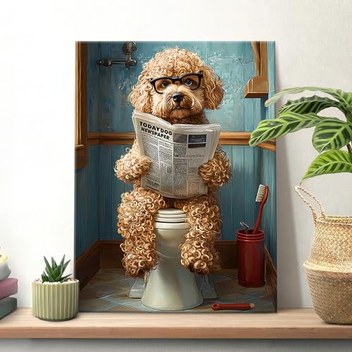HALFLEMART - لوحة جدارية من هالفلمارت، طباعة فنية للحمام بتصميم كلب بودل مضحك، متعدد الألوان، مقاس 30 × 40 سم، قطعة واحدة