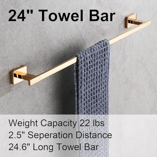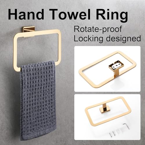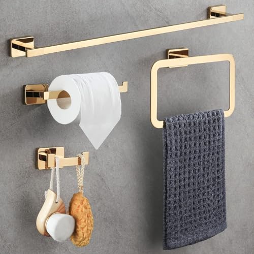Generic - مجموعة معدات الحمام من الستانلس ستيل SUS304 المقاوم للصدا، تتضمن قضيب لحمل فوطة اليد وحامل ورق التواليت وحلقة للفوط وخطاف للروب، اكسسوارات حمام تعلق على الحائط - 4 قطع، دهبى