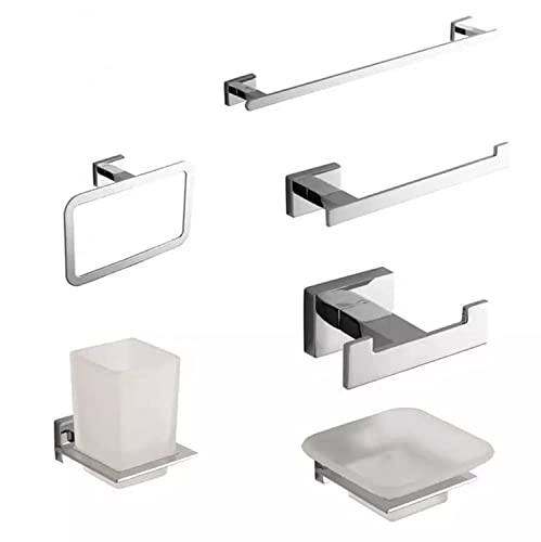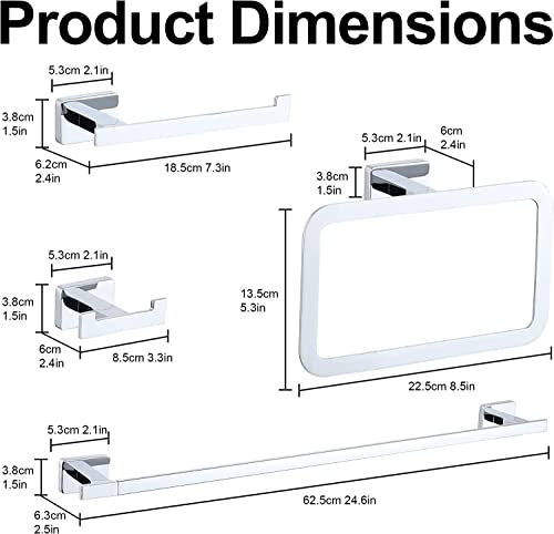 Generic - مجموعة ادوات الحمام، حامل فوطة اليد وحامل ورق التواليت وحلقة فوطة وخطاف روب 6 قطع، طقم اكسسوارات حمام من الستانلس ستيل SUS304 مقاوم للصدا يثبت على الحائط - فضي، 61 سم