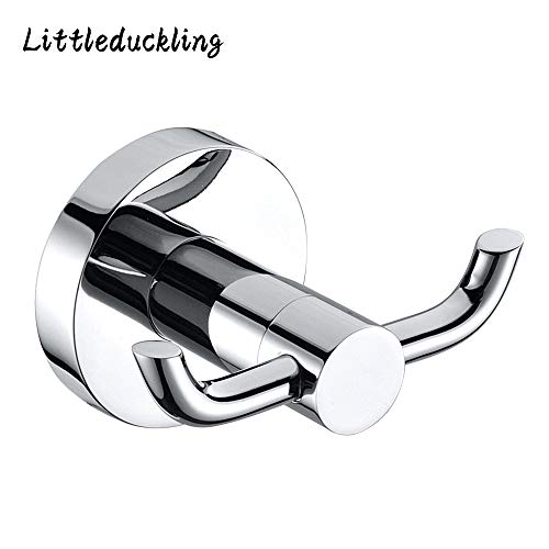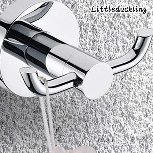 Littleduckling - خطاف حمام عصري مزدوج مصنوع من الفولاذ المقاوم للصدأ للفوط والأرواب، حامل فوط اليد للمطبخ والحمام والطواقي والملابس والفوط، خطافات حائط بلمسة نهائية من الكروم مع مسامير تثبيت، قطعة واحدة