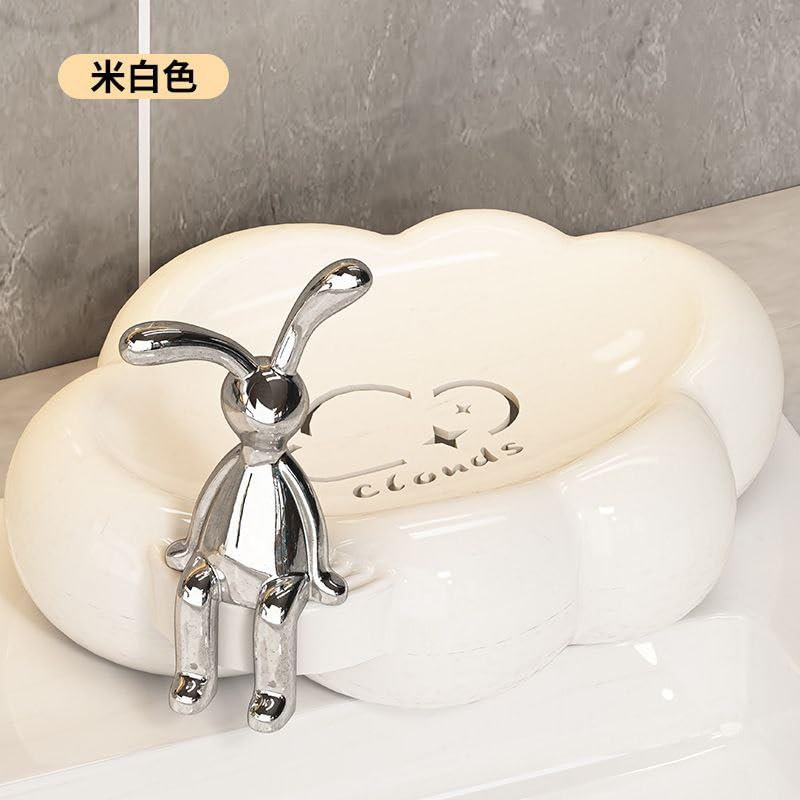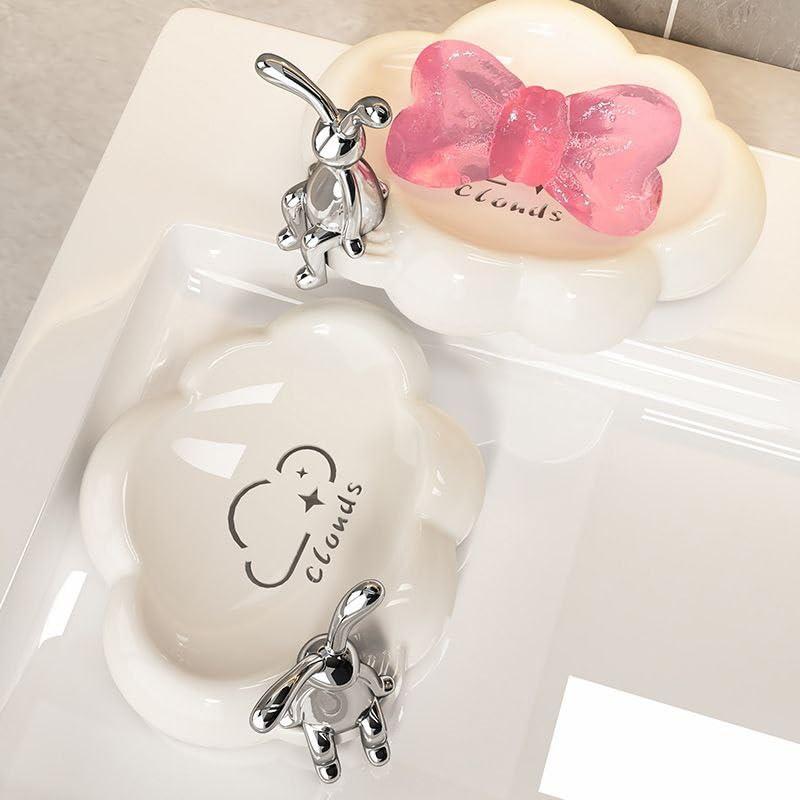 Generic - طبق صابون للحمام والمطبخ مع لمسة ارنب فضية - حامل صابون متين وانيق وعملي، ملحق منزلي فاخر للصابون (قطعة واحدة بيضاء)