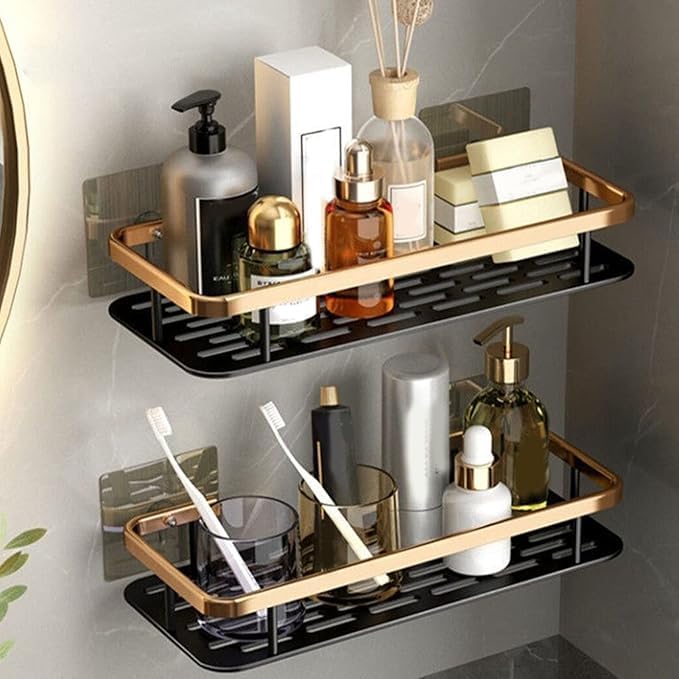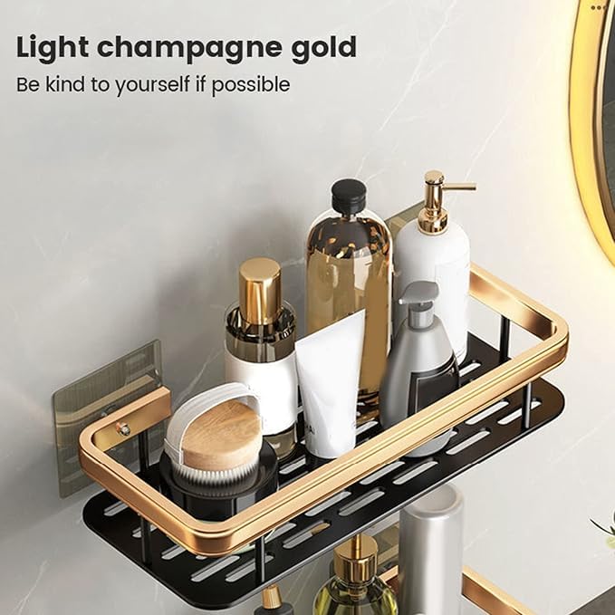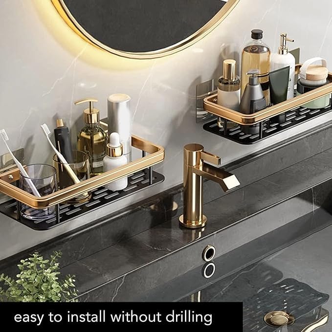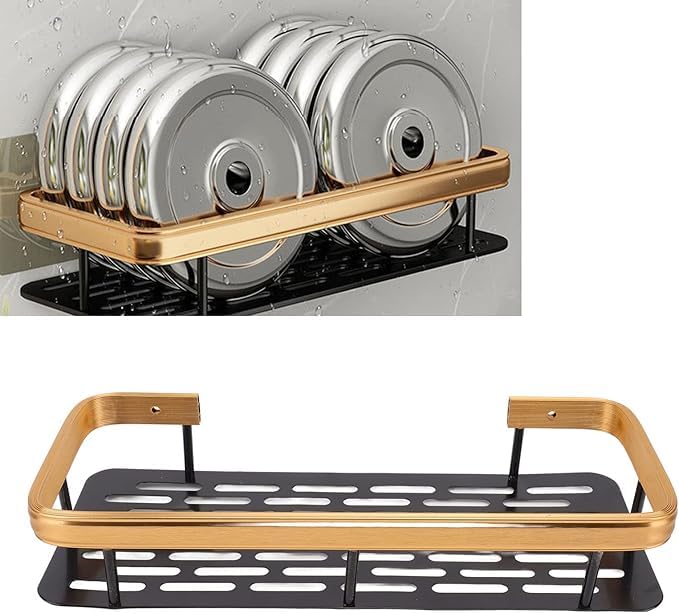 Generic - منظم الحمام، اكسسوارات الحمام، علبة دش بطبقة واحدة متينة من الالومنيوم المقاوم للصدا، رف دش للحمام وغرفة النوم والمطبخ (اسود ذهبي)