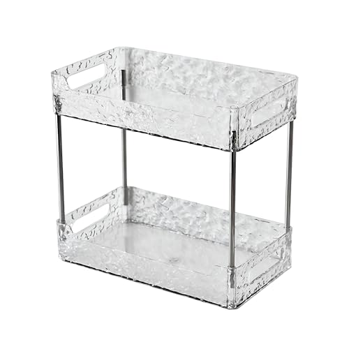 Generic - منظم حمام - صينية بيضاء شفافة من طبقتين مصممة لتخزين مستحضرات التجميل وشفرات الحلاقة وأدوات الشعر، بسيطة وعملية لأي حمام.