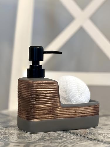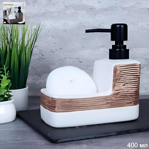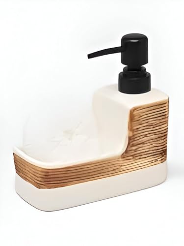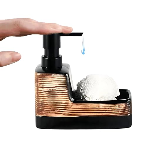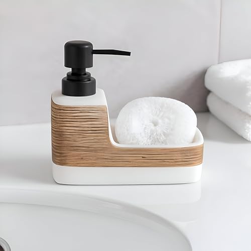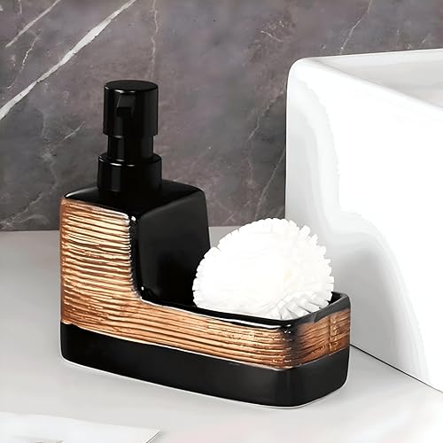 Generic - موزع صابون 2 في 1 من السيراميك الأنيق وحامل إسفنج بتصميم يدوي قابل لاعادة الملء أساسي منزلي ملون للمطبخ أو الحمام