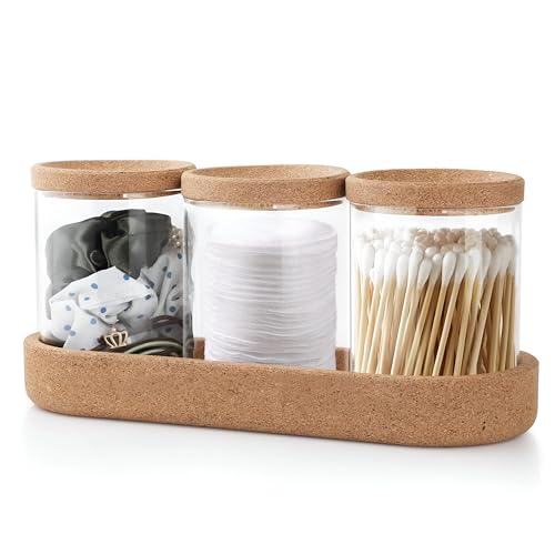 Generic - منظم حمام - طقم حاويات زجاجية أنيقة بأغطية من الفلين لتخزين إكسسوارات التجميل والقطن والمسحات، مما يضيف سحرًا وترتيبًا لركن العناية الشخصية الخاص بك