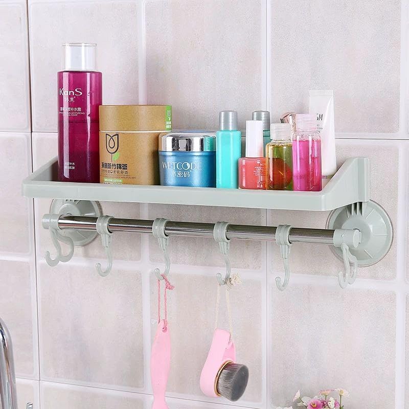 Spaceshoop - رف لاصق منظم للحمام يثبت على الحائط مناسب لتعليق الفوط (لون أخضر)