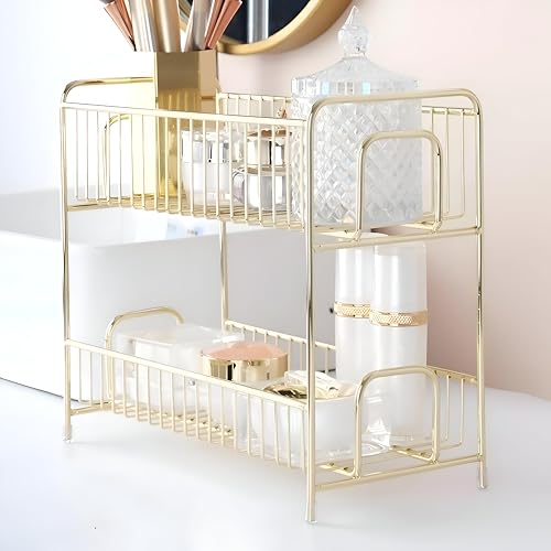 Generic - منظم الحمام وصينية معدنية أنيقة متعددة الطبقات لتنظيم المكياج والعطور ومنتجات العناية بالبشرة على الطاولة الزخرفية، مقاس أكبر 30 مرة، 26.5 سم